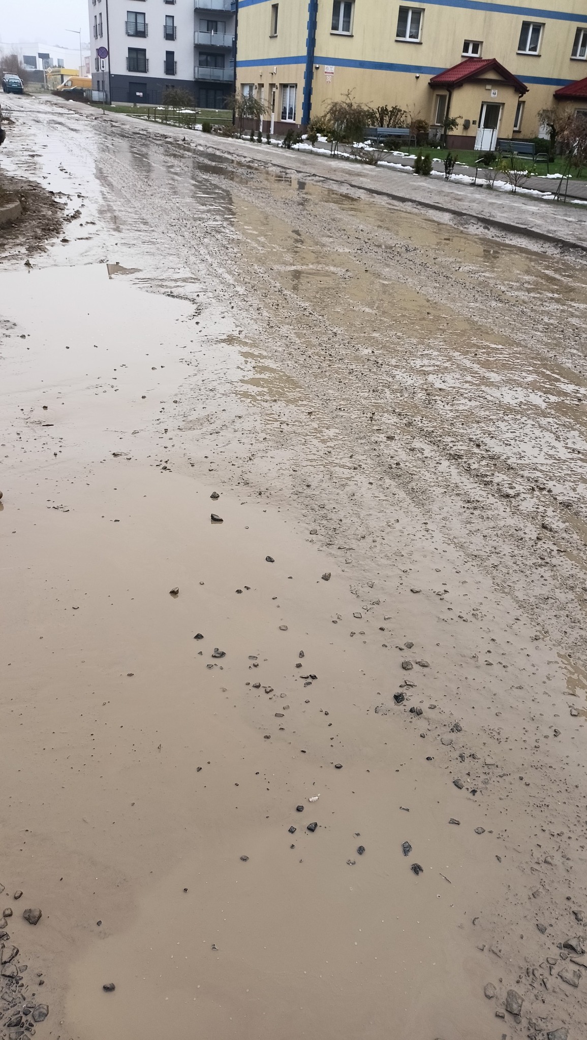 -Proszę, abyście zobaczyli na własne oczy swoje dzieło. Kilkaset metrów od ratusza żyjemy jak zwierzęta hodowlane — piszą mieszkańcy, dodając, że odcinek między ul. Borówkową a Fiołkową to jedyna droga dojazdowa do ich domów, dziś w stanie dramatycznym.