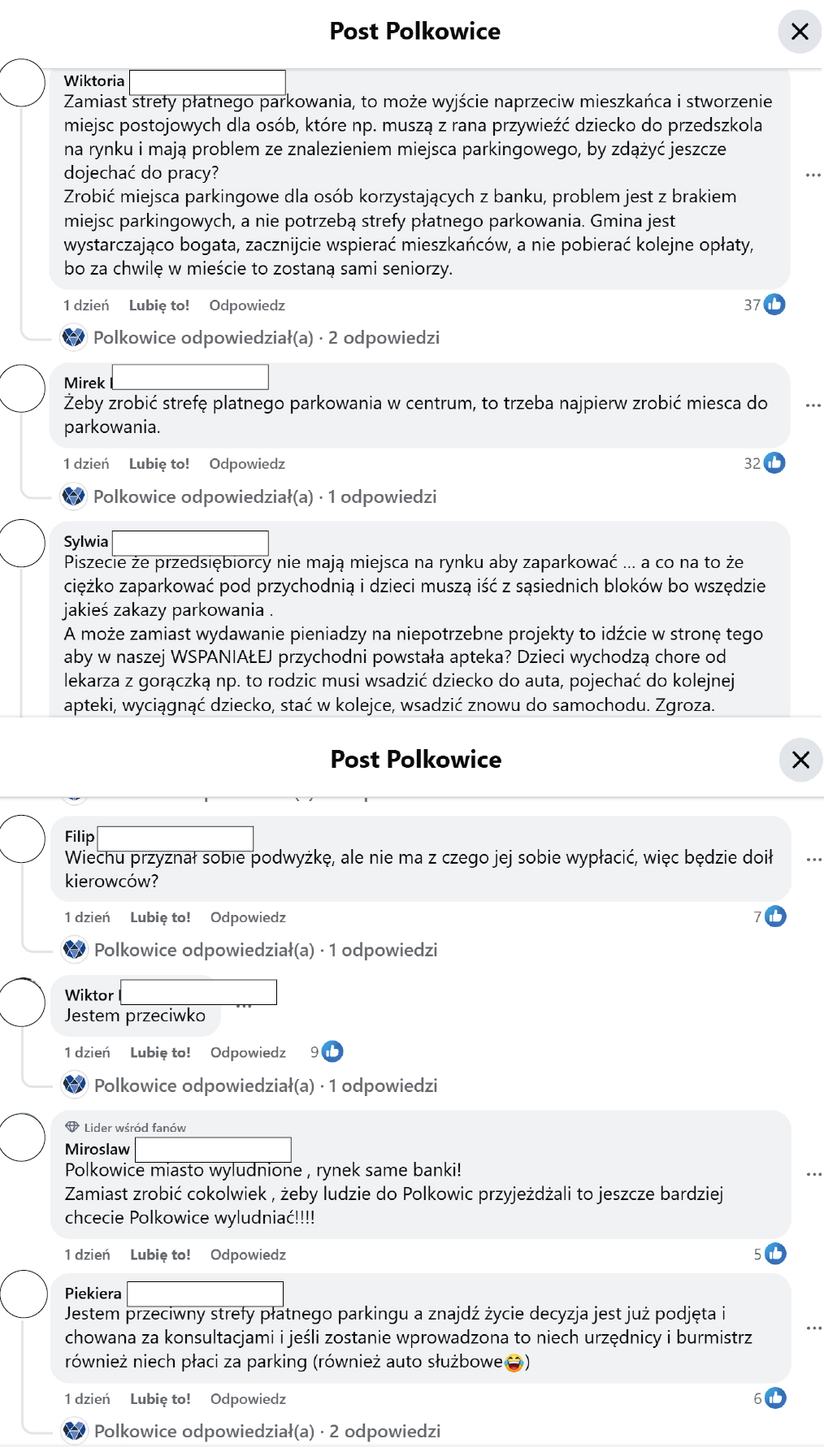 Tymczasem w mediach społecznościowych dominują głosy sprzeciwu. W komentarzach mieszkańcy w zdecydowanej większości krytykują sam pomysł wywołania pomysłu, wprowadzenia opłat za parkowanie, wskazując na dodatkowe koszty i obawy o dostępność centrum dla klientów i mieszkańców.