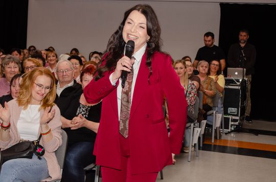 – Nie zabraknie dzisiaj tańca, piosenek i anegdot. Wszystko za sprawą premierowego programu Katarzyny Pakosińskiej, wyjątkowej aktorki i artystki kabaretowej, która świętuje 30-lecie pracy artystycznej - zapowiedziała wydarzenie Renata Chrzan, dyrektorka Centrum Kultury i Sportu w Grębocicach.